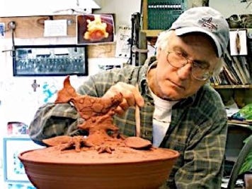 My wife was away for a long weekend and I spent an uninterrupted few days in my art studio forming casseroles. The theme of “fish handles” on covered vessels is not new to me, but on this piece, I...