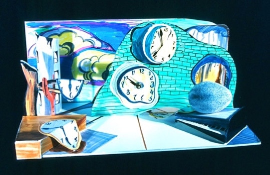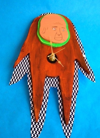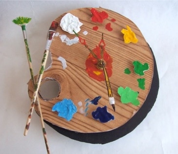 in a timely fashion uses the pallette imagery for her theme. Attachment of brushes expands the space for more visual interest and the second-hand turns into a brush as well.