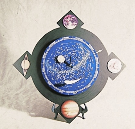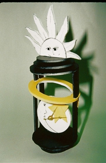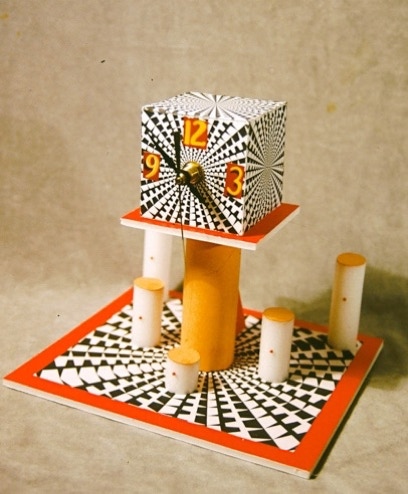 clock has visual interest from all sides. He explores space in a variety of ways, including the faceted pedestal.
