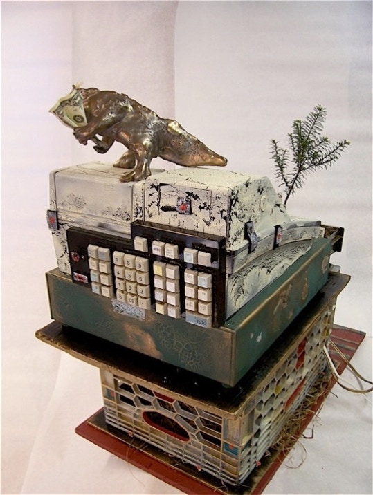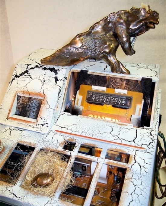 Lights flash on and off revealing numbers tallied, previously unseen skeleton and skull .