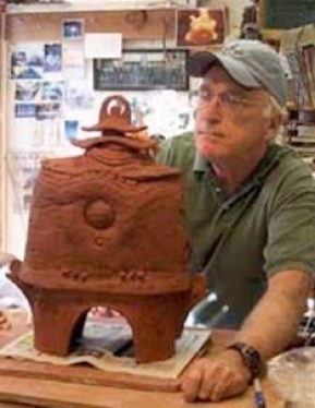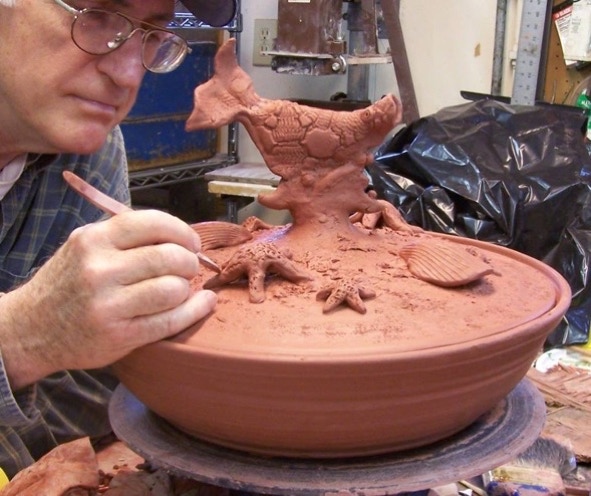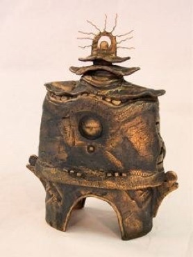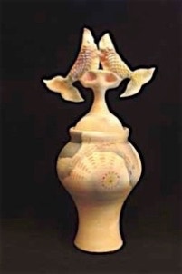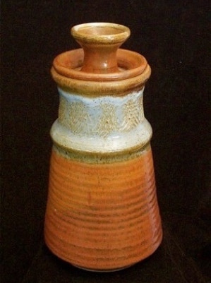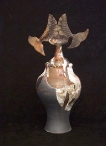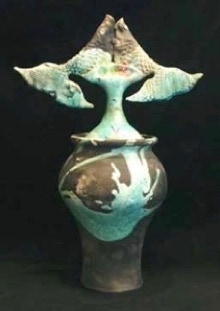 These three “ Fish Pots” were in a series: 1 and 3 were fired by the raku technique; #2 was airbrushed and fired to cone 6.