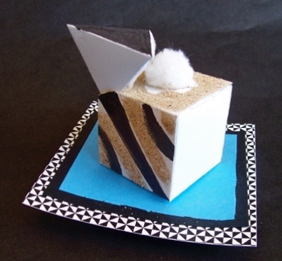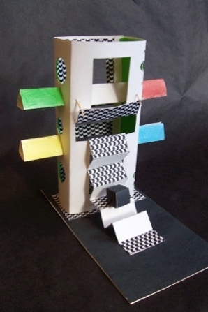 Bristol paper, matt board, colored paper, markers. Approx. 10” high.
