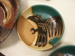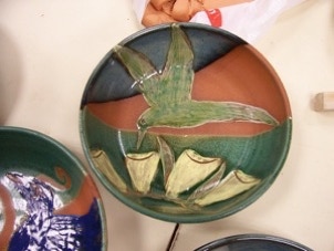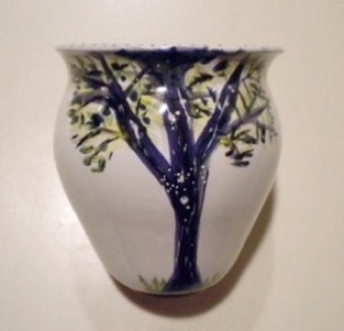 The light colored pots below, were created using the majolica technique of painting. This technique was demonstrated by class member, Carolyn Jacobson. Generously, Carolyn gave those people more deeply interested in this beautiful technique an opportunity for a hands-on experience. She invited six of these people to her studio, where they decorated the pottery created at N.C.C., then glaze - fired them in her kiln.
