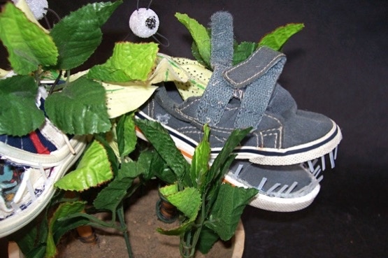 Carnivorous plants are plants that derive some or most of their nutrients (but not energy) from trapping and consuming animals and insects. Jose incorporates a child’s canvas sandal into a vicious looking mouth with teeth.