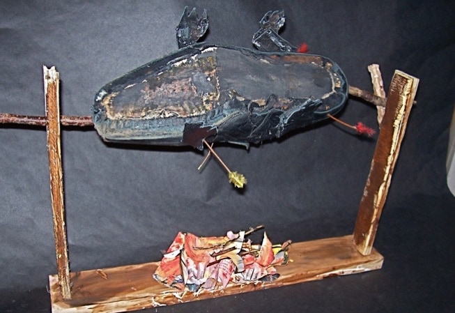 Elliott Nation “roasts” his shoe over a symbolic fire.